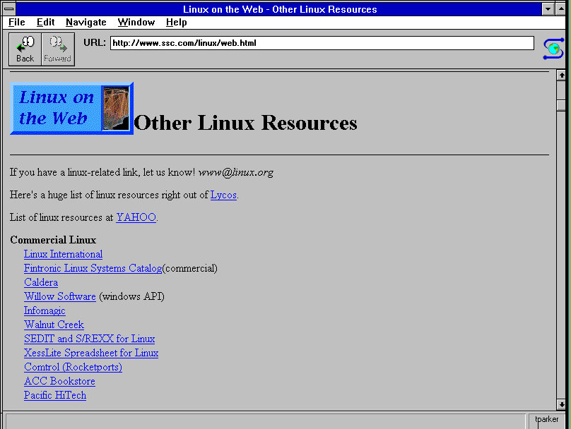 From the Linux home page at www.ssc.com, you can also link to other Linux sites, including those of commercial vendors of Linux products. Figure 1.2 shows the screen that appears when you click the Linux on the Web icon. These links are updated frequently, so they are a good place to start when navigating through the Web.