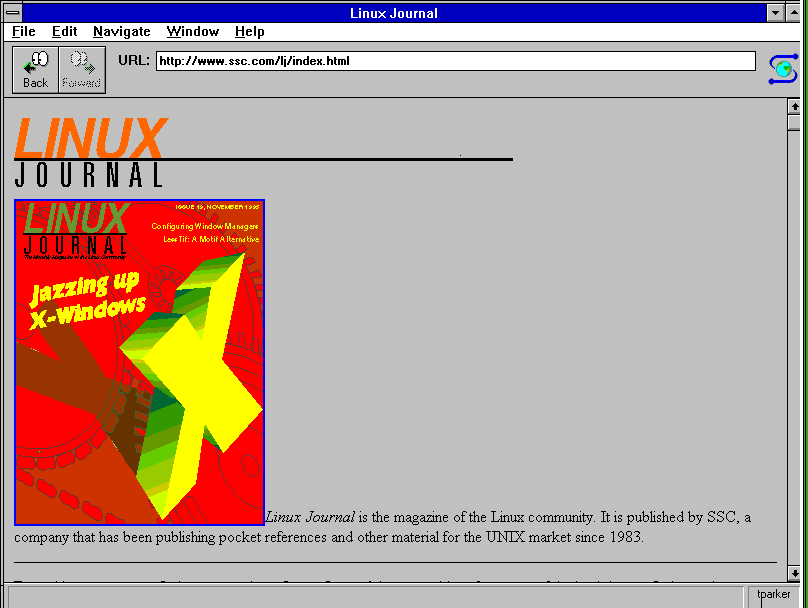 The Linux Journal is a commercial publication dedicated to Linux. It covers the entire gamut of Linux topics, ranging from material suitable for newcomers to the operating system to very complex programming information. Figure 1.5 shows the home page for the Linux Journal, which is accessible through www.ssc.com. The magazine is not on-line, but its Web page can give you a sample Table of Contents, issue information, and subscription details.